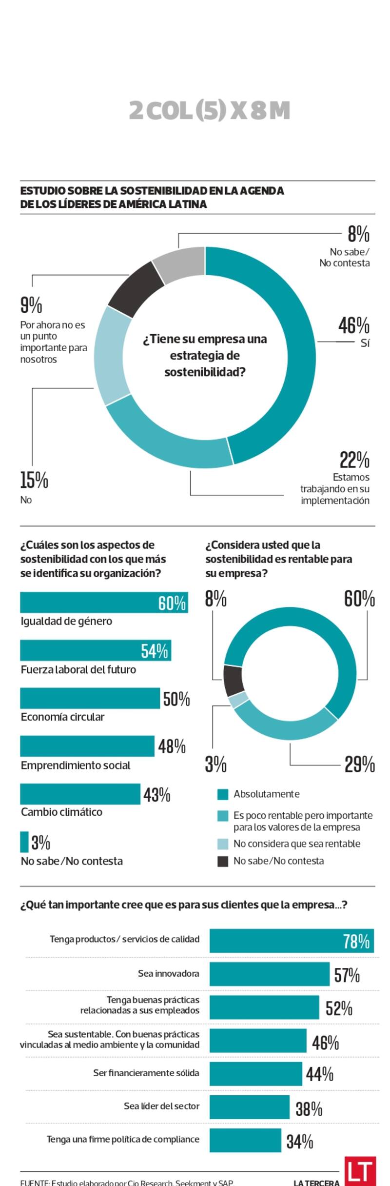 De 450 altos ejecutivos encuestados en América Latina, menos de la mitad reconoció que en su empresa tienen alguna política de sustentabilidad. De eso da cuenta un estudio elaborado por las empresas CIO Research, Seekment y SAP, el cual concluye que este asunto sigue siendo prioritario.