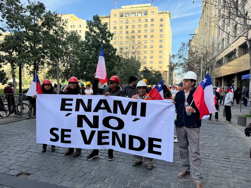 Un grupo cercano a los mil pequeños y medianos empresarios mineros -según los organizadores- llegó esta mañana a la Plaza de la Constitución, encabezados por la directiva de la Sociedad Nacional de Minería (Sonami), para manifestar su rechazo a la potencial venta del 10% de la propiedad que la Empresa Nacional de Minería (Enami) mantiene en el proyecto minero Quebrada Blanca, a Codelco. En el acto, los representantes gremiales entregaron una carta dirigida al Presidente Gabriel Boric, llamando a capitalizar la empresa estatal en vez de avanzar con la enajenación de su participación en el yacimiento operado por la canadiense Teck.