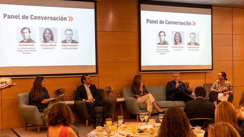 Junto con dar a conocer la segunda versión del Informe de Equidad Empresarial y Buen Gobierno Corporativo, se llevó a cabo un conversatorio en el que personas expertas compartieron sus perspectivas sobre los hallazgos más relevantes del informe. El panel estuvo conformado por Fernando Arab, ex subsecretario del Trabajo y socio de Arab Abogados; Susana Jiménez, presidenta de la Confederación de la Producción y del Comercio (CPC); y Holger Paulmann, presidente de Icare. El conversatorio fue moderado por María José Díaz, gerenta general de ChileMujeres y Fadua Gajardo, directora ejecutiva del Instituto de Directores de Chile.