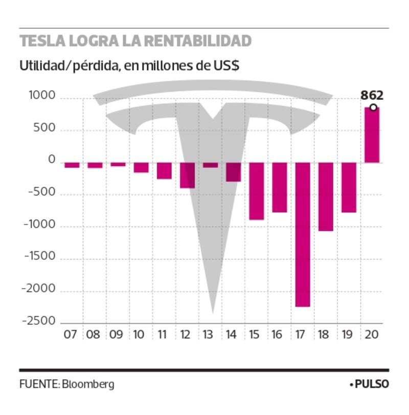 Tesla está dando muestras de su madurez al anotar por primera vez en su historia un año de rentabilidad. La compañía que está a la vanguardia de los automóviles eléctricos consiguió una ganancia anual de US$862 millones en 2020, lo que contrasta con la pérdida de US$775 millones de 2019 y los datos rojos de todos los años previos.