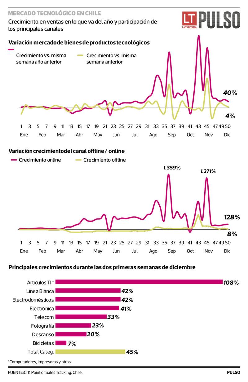 Las ventas simplemente se dispararon hace unos meses impulsadas por el desconfinamiento y el retiro del 10% de las AFP, tendencia que en esta Navidad se agudizó. Esto, que se puso de manifiesto con las grandes aglomeraciones en las calles y centros comerciales, fue lo que aterrizó en datos la consultora GfK, con sus cifras correspondientes a las dos primeras semanas de diciembre, donde muestra que el mercado de bienes tecnológicos y durables aumentó 40% respecto del año anterior. Eso sí, crece 4% si se compara con la semana inmediatamente anterior.