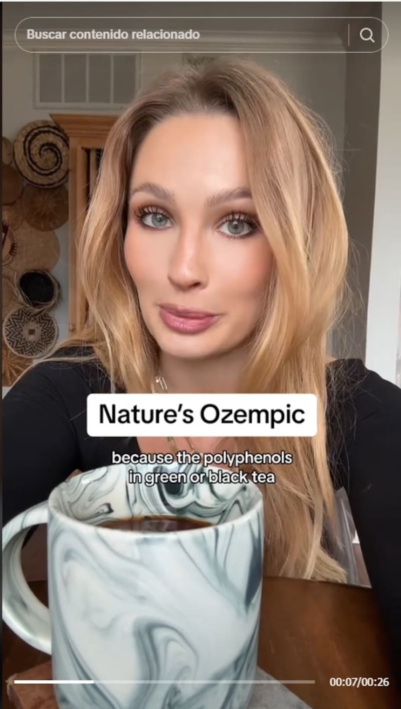 Por ello, si tu objetivo es adelgazar pero te preocupan los posibles efectos secundarios de Ozempic o no puedes acceder a él, la nutricionista especializada en pérdida de peso Maggie Hennigan dice en su más reciente vídeo de TikTok, que el té verde podría suplir con eficacia a Ozempic: “Es solo un recordatorio diario para no dormirte con el ‘Ozempic de la naturaleza’, también conocido como té verde”, señaló en su posteo.
