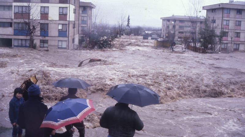 En junio de 1982, en una icónica imagen, un pequeño Austin Mini caía a la ribera del Mapocho, ante la inesperada crecida del río debido a un un intenso temporal, que generó calles inundadas y ríos absolutamente desbordados. Con 123,7 mm acumulados durante cinco días de precipitaciones, el evento meteorológico quedó en la memoria colectiva de todos los chilenos. Es uno de los grandes temporales de los que se tiene recuerdo, ya que además se extendió entre la Región de Coquimbo y el Maule, llegando a una magnitud 10 en la escala de Beaufort.