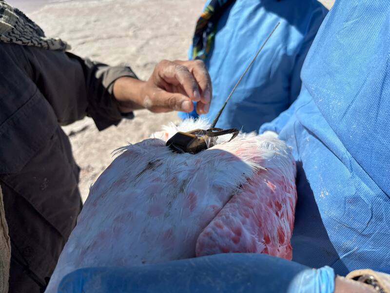 Pionero proyecto medioambiental instala por primera vez monitores satelitales en flamencos chilenos