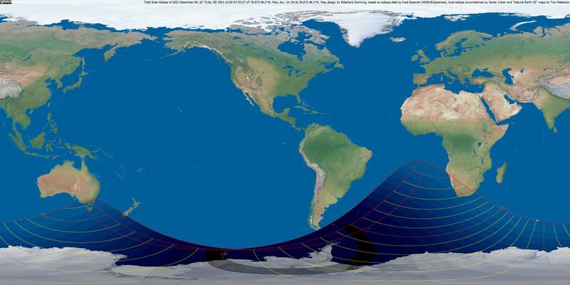 Y el próximo 4 de diciembre (47 días), será el tercero, cuando a partir de las 7.34 de la mañana en la Antártica, el océano Antártico y el océano Atlántico sur, además de una porción de Tierra del Fuego, incluyendo la ciudad de Puerto Williams, logren una oscuridad total por un minuto y 54 segundos, mientras en la Antártica este durará una hora y seis minutos. La región no volverá a presenciar uno hasta el año 2048.
