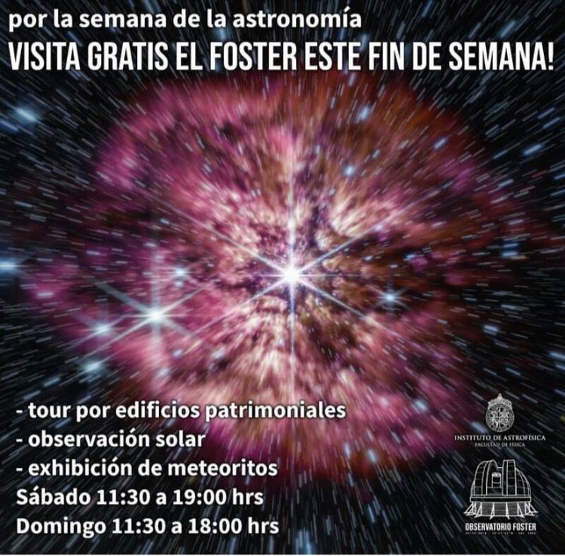 Simón Angel, director científico del Observatorio Manuel Foster, señala que “la invitación es a que nos visiten en el observatorio Foster de manera presencial, vamos a estar desarrollando actividades de manera gratuita durante el día sábado 25 (11:30-19:00) y domingo 26 (11:30 a 18:00), además de nuestras visitas nocturnas”.