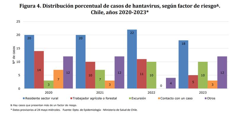 Además, en 2019, el año con más casos registrados, la entonces subsecretaria Paula Daza explicaba que en las regiones afectadas se pudo apreciar “un aumento considerable de roedores en la zona, producto probablemente de un cambio del comportamiento de las precipitaciones que ha hecho una mayor floración de la quila, vegetal que es el alimento principal del ratón”.