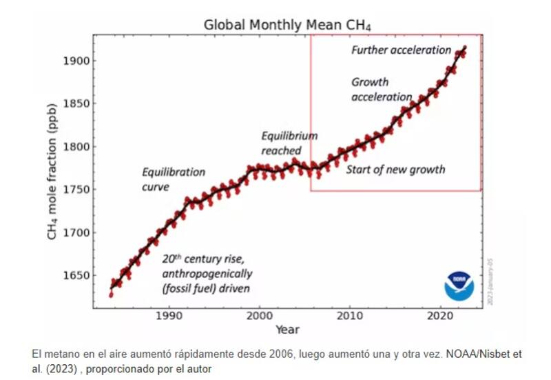 El metano es tanto un impulsor como un mensajero del cambio climático. No sabemos por qué ahora está aumentando tan rápidamente, pero el patrón de crecimiento desde finales de 2006 se asemeja a cómo se comportó el metano durante grandes cambios en el clima de la Tierra en el pasado.