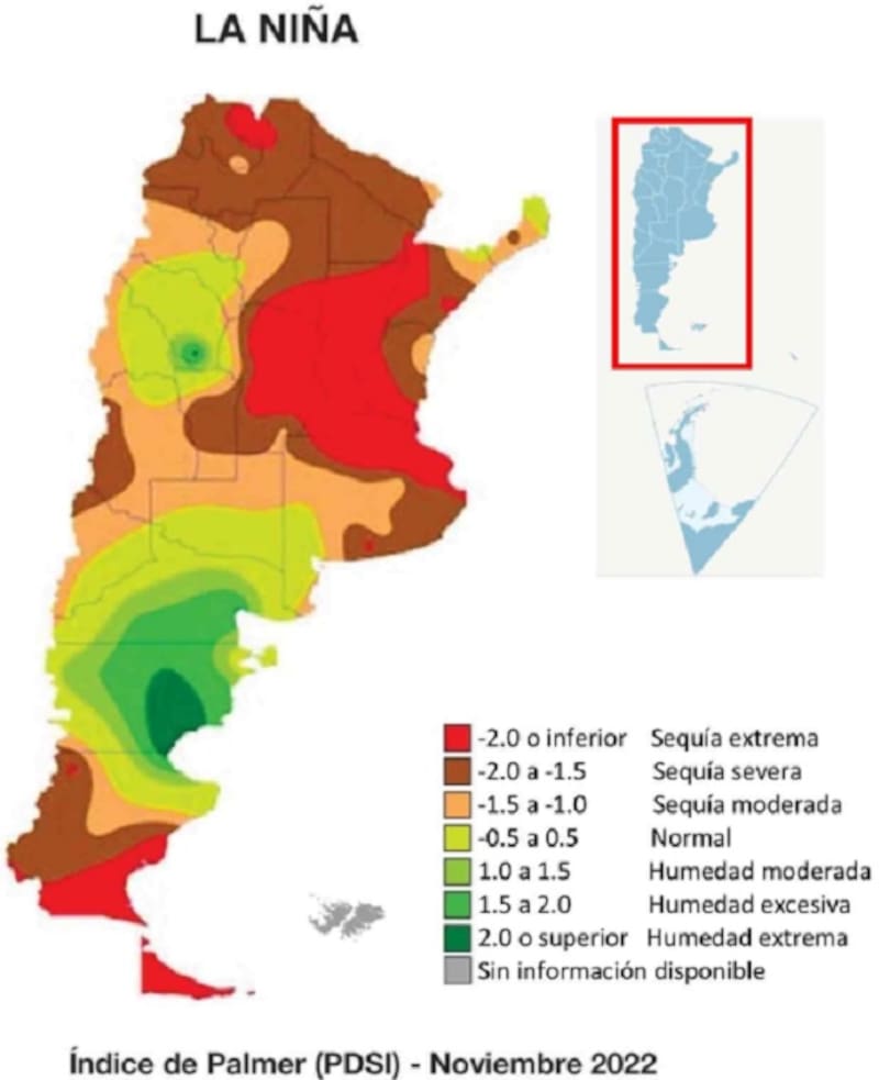 La Niña suele generar veranos más cálidos y secos en el sur de Brasil y Argentina. Este clima más seco, ha despertado la alarma entre los agricultores argentinos, uno de los principales exportadores de soja y maíz del mundo.