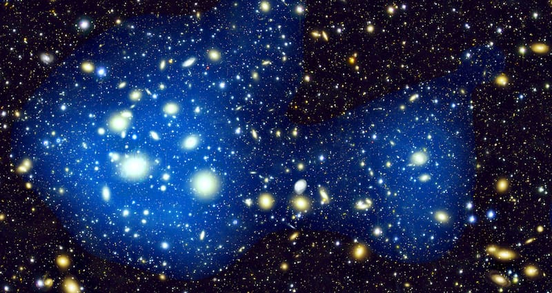 Astrónomos acaban de encontrar un puente de materia oscura que conecta dos galaxias en colisión