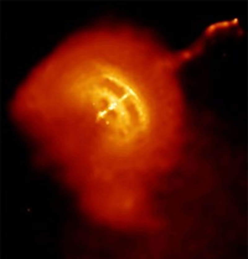 Lo que parece ser una mano fantasmal que se extiende a través del Universo hacia una indefensa galaxia es un fenómeno cósmico rara vez visto, según los astrónomos.