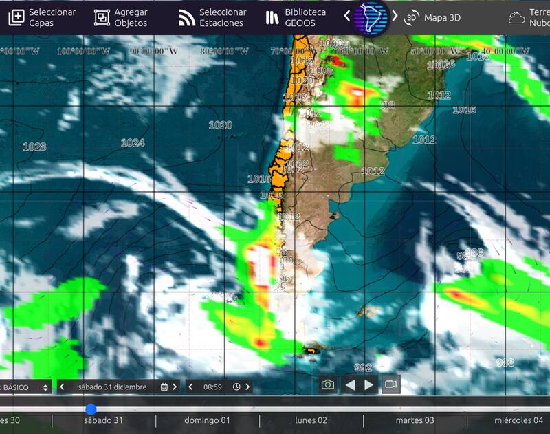 Misma condición, pero ya más debilitada podría dejar nuevamente precipitaciones hacia la cordillera en la noche del sábado. “Desde la región de Los Lagos hacia la región de Magallanes se verán afectados por el paso de un sistema frontal que dejará precipitaciones a su paso, especialmente durante el sábado”, añade Fernández.