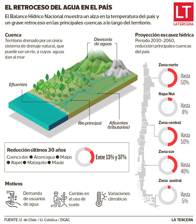 En esta crisis entran varios factores en juego. “Además del cambio climático y de la variabilidad natural de la precipitación, también está el tema de que la industria agrícola se ha expandido mucho y tiene un consumo de agua muy grande, aunque todavía nos faltan estudios que cuantifiquen bien todos estos problemas”, dice Boisier.