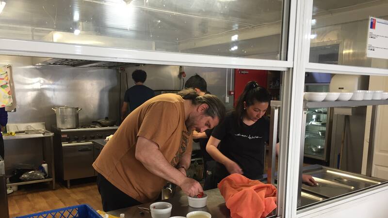 Arrancamos a las 8.30 am sacando las cosas para el desayuno y terminamos de limpiar la loza de la cerca de las 9 pm. Así de largas son las jornadas de la cocina y con la presión añadida de alimentar bien a toda la base. El menú fue sencillo, pero sabroso: porotos con riendas para el almuerzo y papas con lomo de cerdo marinado para la cena. Las ganas de hacerlo bien y lo grande de las cantidades siempre le añaden un poco de picante extra a la situación, sin embargo, uno se tranquiliza cuando en el comedor no se oyen voces, sino mandíbulas batientes. La relajación es total cuando la gente pregunta si se puede repetir. Con la sensación de misión cumplida termina nuestro domingo, mientras el cuerpo protesta por las largas horas de pie. Cocinar 12 o 13 horas debería ser un nuevo deporte olímpico.