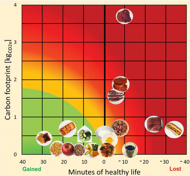 El estudio, liderado por el profesor Olivier Jolliet y publicado en la revista Nature Food en 2021, desarrolló el Índice de Nutrición y Salud (HENI, por sus siglas en inglés). Este índice permite calcular la carga neta beneficiosa o perjudicial para la salud en minutos de vida saludable asociados con el consumo de una porción de alimento.