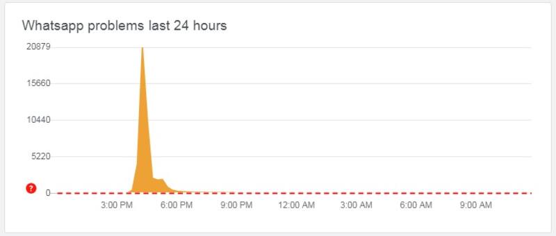El sitio web DownDetector, especializado en problemas como el ocurrido ayer con WhatsApp, reveló una gráfica que evidencia la caída en el sistema de la red social evaluando las últimas 24 horas. Alcanzó su peak después de las tres de la tarde y a las 6 pm su funcionamiento ya era el habitual.
