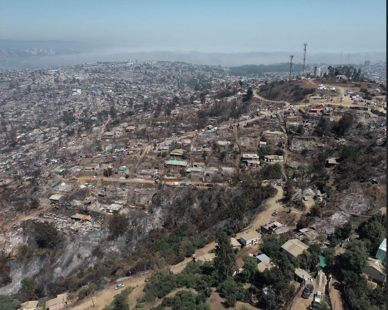 En Viña del Mar, por ejemplo, hay un total de 93 campamentos, 13 de los cuales fueron afectados por el incendio, lo que equivale al 14,3% de las áreas informales de la ciudad. En Valparaíso este peligro también fue advertido tras los incendios de 2014, que afectó a siete cerros de la ciudad y donde también había proliferación de asentamientos informales. Nada se ha hecho al respecto y actualmente existen 74 campamentos en Valparaíso, que se distribuyen en la parte alta de los cerros, comprendiendo una superficie total de 105, 57 ha. Seis de ellos agrupan a más de 100 hogares tales como Mesana Alto, Violeta Parra, Altos de Placilla, Pampa Ilusión, La Isla y Los Lancheros.