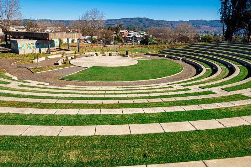 “El anfiteatro no es solo para nosotros, colegios o actos municipales, es para todos los que quieran hacer cosas y la idea es que pase a ser parte de la comunidad, en un aporte para todas las expresiones artísticas de la comuna”, dice Artiagoitía, sobre espacio que se inserta en el entorno natural, entremezclándose con el verde de los árboles y el pasto. “Aquí no se necesitan más telones, porque el escenario real es parte del terreno”, añade.