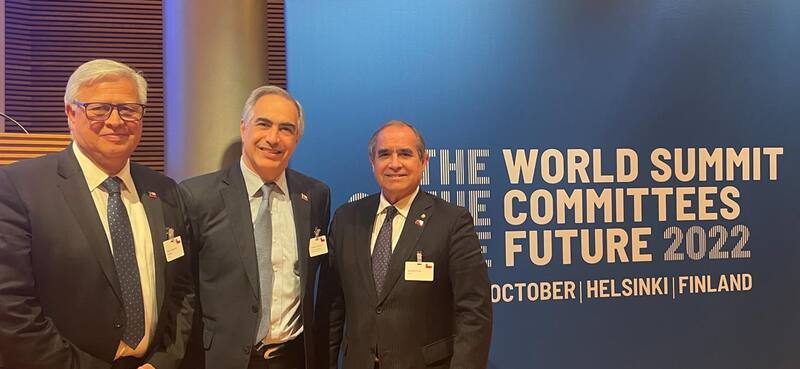 Congreso Futuro, mesas temáticas sobre desafíos chilenos que congregan a más de mil expertos nacionales y los avances legislativos en materia de neuroderechos, genoma humano y plataformas digitales, fueron los temas que expuso el presidente de la comisión Desafíos del Futuro, senador Francisco Chahuán, en The World Summit of the Committees of the Future 2022, realizado en Finlandia y que congregó a representantes de 17 parlamentos del mundo encargados de tratar los desafíos del mañana.