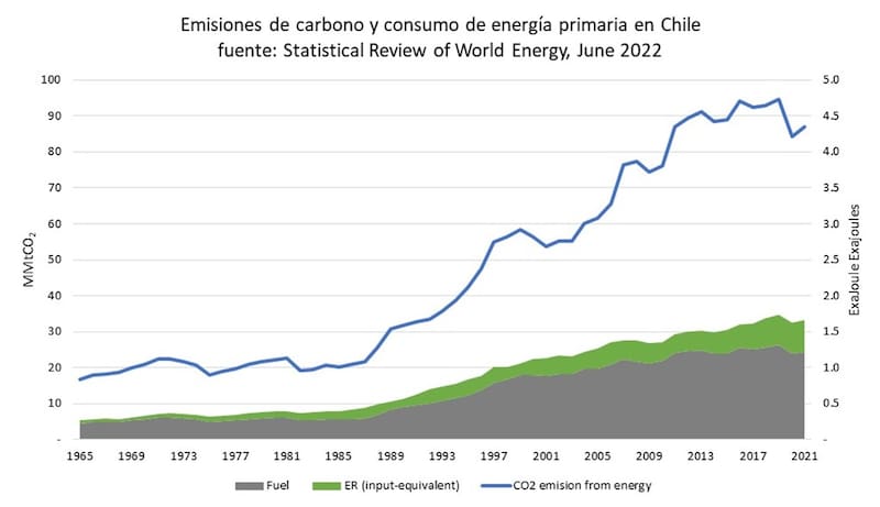 Afortunadamente, gracias a la emergencia de las energías renovables no convencionales, la curva de emisiones ya no muestran crecimientos explosivos. “Las emisiones del país cayeron, al igual que en todo el mundo, durante 2020, debido a los confinamientos asociados a la pandemia. Aunque las emisiones probablemente rebotaron en 2021, la IEA estima que estas están lejos de los niveles récord alcanzados en 2019. Aunque es pronto para confirmar que haya sido así, las emisiones de Chile debieron haber alcanzado su máximo ese año″, agrega Cordero.