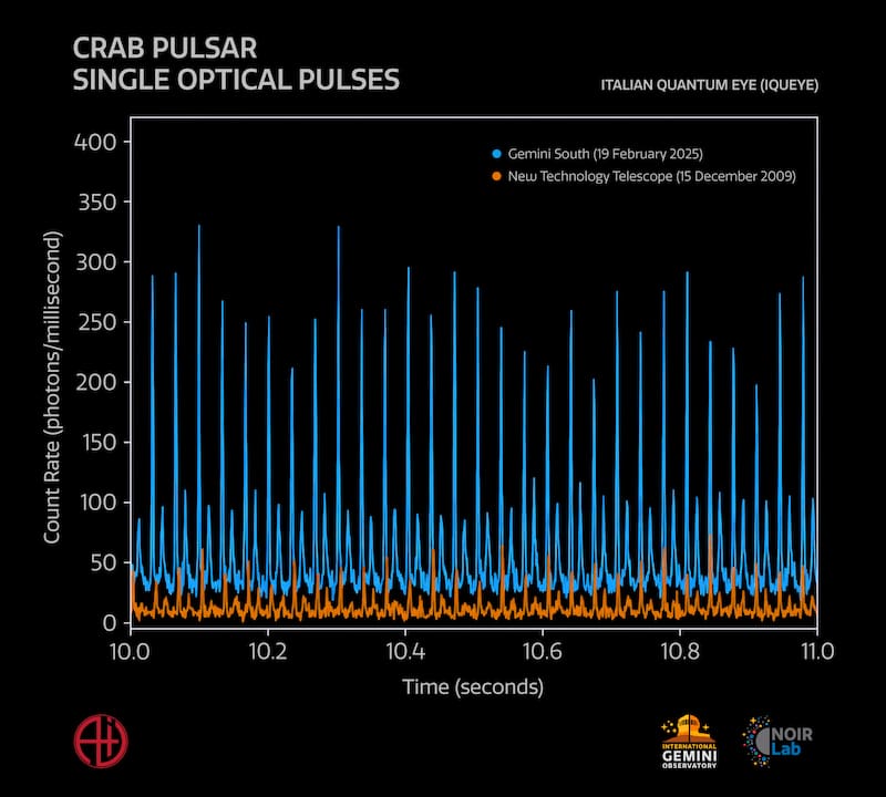 El proyecto ha logrado ver su primera luz en Gemini Sur observando el Púlsar del Cangrejo, siendo éste el objetivo ideal al ser una de las fuentes de pulsos (de microsegundos) más brillantes y mejor documentadas. Si bien otros telescopios han observado este espectro en varias longitudes de onda, es primera vez que se observa con una resolución temporal tan alta y a un nivel de detalle y sensibilidad superior. Sin embargo, Cassanelli destaca que esto no es a lo único que se dedicará.