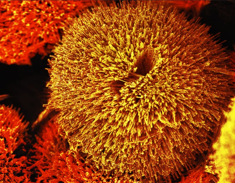 La semejanza con un coral es sorprendente. Sin embargo, La fotografía muestra un agregado de tubos de óxidos de vanadio en distintas oxidaciones (V(5+) y V(4+)).