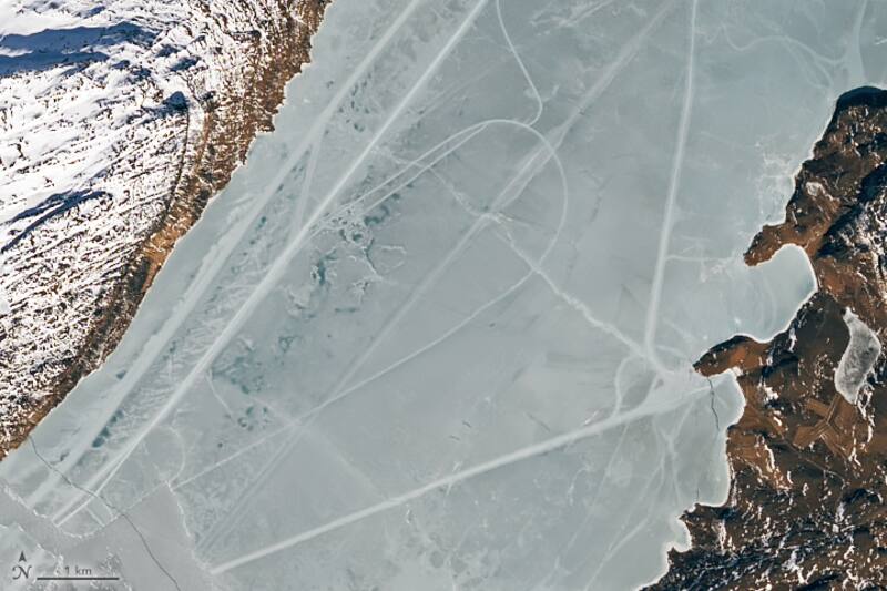 Nathan Kurtz y varios otros científicos del Laboratorio de Ciencias Criosféricas del Centro de Vuelo Espacial Goddard de la Nasa revisaron las imágenes. Su consenso fue que muchas de las pistas, especialmente aquellas que incluyen bucles, probablemente fueron producidas por vehículos, como motos de nieve. “Parece probable que los residentes de la ciudad o de los alrededores estuvieran en el hielo, posiblemente cazando o viajando”, dijo Kurtz.