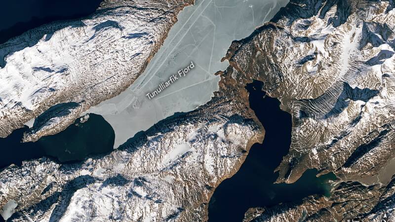 El 13 de marzo de 2023, el instrumento Operational Land Imager-2 (OLI-2) del satélite Landsat 9 captó imágenes en color natural del fiordo Tunulliarfik. Las imágenes han sido trabajadas para resaltar más detalles.