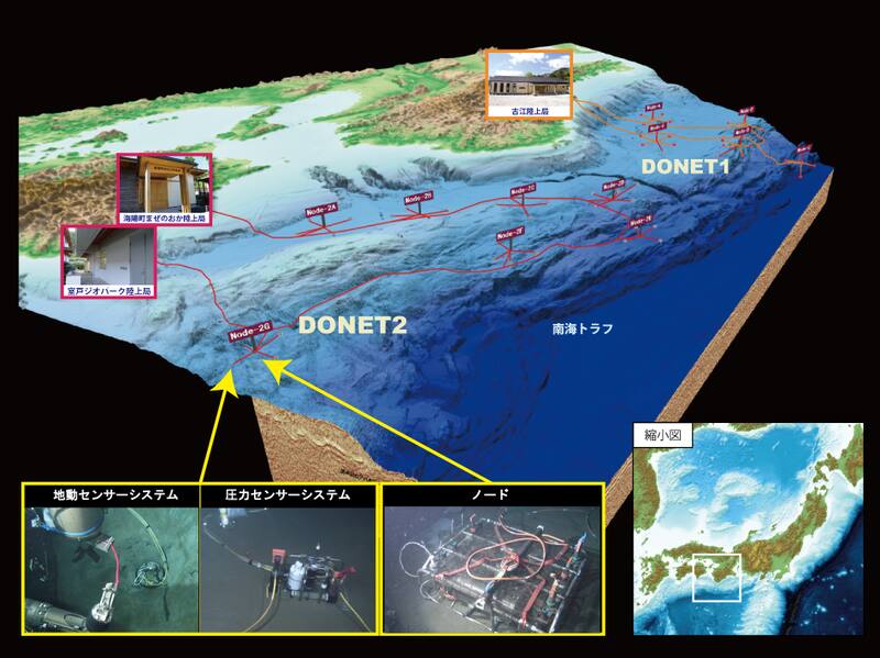 Asimismo, en dicha parte de Japón se utilizan los instrumentos más sofisticados que existen en el mundo para detectar deformaciones asociadas a terremotos en zonas de subducción de la Tierra. En específico, el proyecto Donet (Sistema de red densa de fondo oceánico para terremotos y tsunamis, por sus siglas en inglés) contiene instrumentos sísmicos instalados en el fondo marino y conectados con un cableado submarino capaz de detectar deformaciones de muy baja intensidad, mediante sismómetros de banda ancha, medidores de presión, hidrófonos y termómetros que pueden anticipar rupturas sísmicas, que pueden gatillar alertas de terremoto y tsunami.