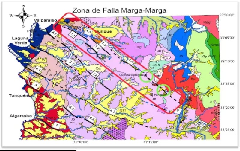 El patrón de comportamiento lineal de daños registrados durante el terremoto histórico del año 1906 indica que la falla geológica puede haber causado una gran amplificación sísmica en sus vecindades. “Se trata de una falla que no es sismogenética, como la de Ramón o San Ramón”, advirtió Salucci.