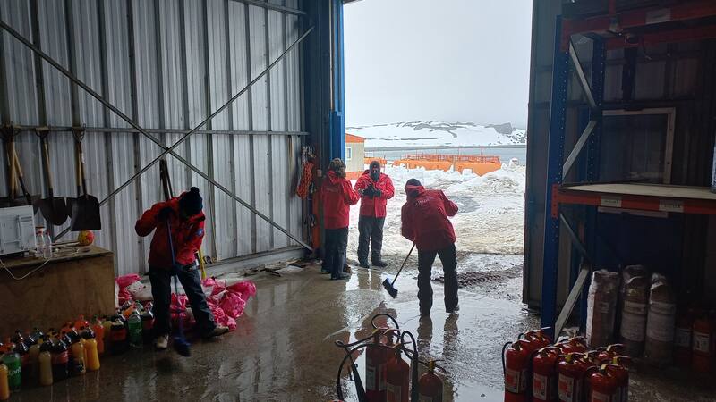 A esa situación estándar debemos agregarle el coeficiente antártico. Mi cálculo grosero me dice que por cada hora de ciencia que hacemos aquí empleamos unas 3 o 4 horas en labores extra que nos permiten desarrollar nuestro trabajo. Cuando llegamos al continente blanco, debemos montar un laboratorio desde cero y equiparlo y antes de ello, tenemos que acondicionarlo y limpiarlo. De forma previa, tenemos la misión de planificar, cotizar, comprar, empacar y enviar decenas de cajas con miles de materiales. Una vez que llegamos a la Antártica, recibimos la carga, la revisamos, organizamos y estibamos. Luego, como miembros de esta pequeña y aislada comunidad, todos debemos ayudar haciendo aseo, cocinando, y moviendo cajas y víveres. Después de todas tareas ¨domésticas¨ (pero no triviales) llega el tiempo de preparar el material, pulir los últimos detalles del diseño experimental, reparar cualquier desperfecto, organizar las salidas a terreno y las horas o días limpiando, una y otra vez hasta que uno sabe si vive de día o de noche.