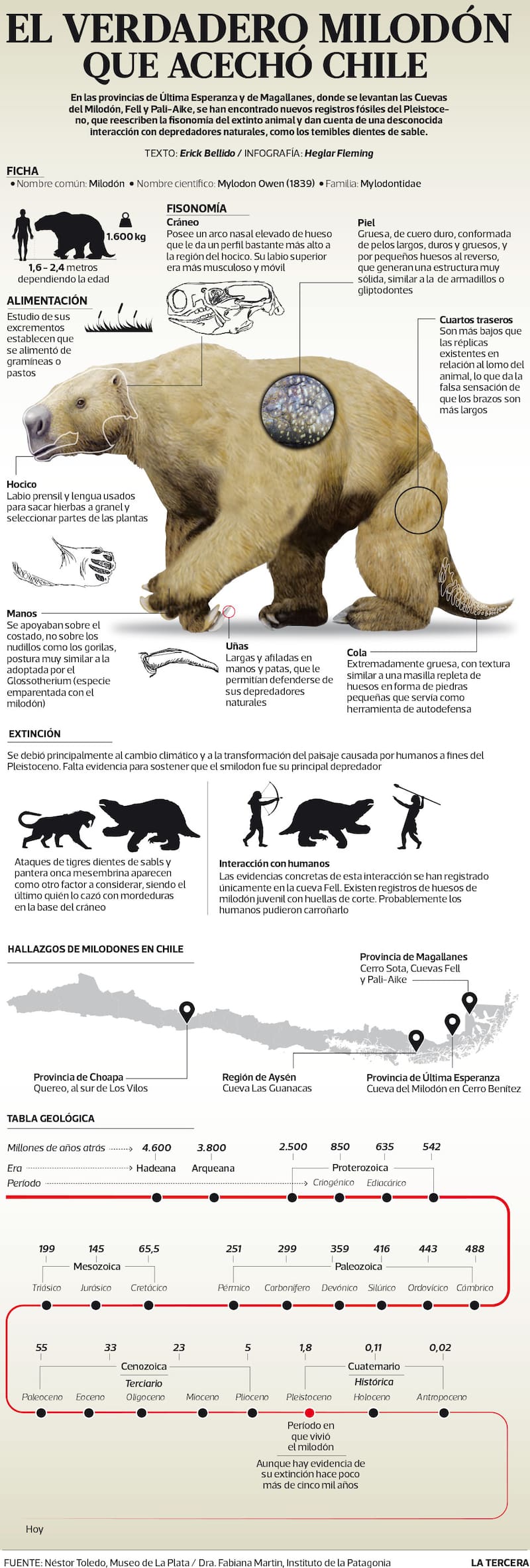 En 1896, en la provincia de Última Esperanza, Región de Magallanes, el colono y explorador alemán Hermann Eberhard junto a un grupo de colaboradores, descubrieron restos de piel y huesos de milodón en excelente estado (posteriormente se determinó que tenían 10.000 años de antigüedad) al interior de una cueva de grandes proporciones, a la que bautizaron la Cueva del Milodón.