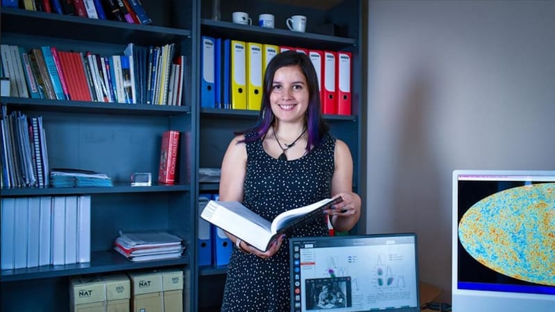 Daniela de 28 años, es de Villa Alemana en la Quinta Región. Está haciendo un doctorado en Física en la Universidad de Chile y fue galardonada por su tesis en cosmología física, donde aplica herramientas de inteligencia artificial para entender el Universo y lo desconocido de este.