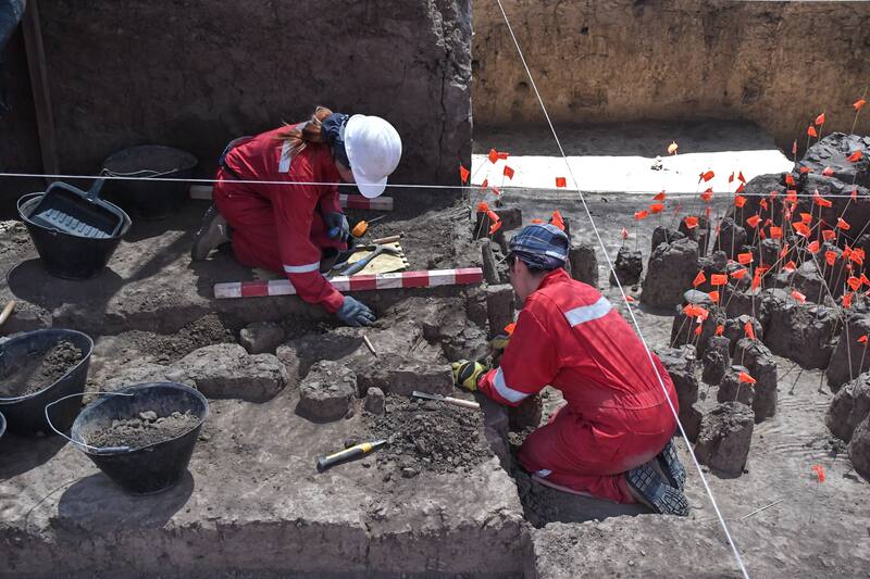 “La cantidad de pozos depende del tamaño de la instalación de la faena, por supuesto, porque la idea es cubrir un porcentaje representativo de ellas”, explica la arqueóloga de Metro de Santiago, Consuelo Carracedo. Usualmente la cantidad de pozos arqueológicos varía de 5 hasta 60, según el tamaño de la instalación. En el caso de talleres y cocheras, se realizaron 67 pozos de sondeo.