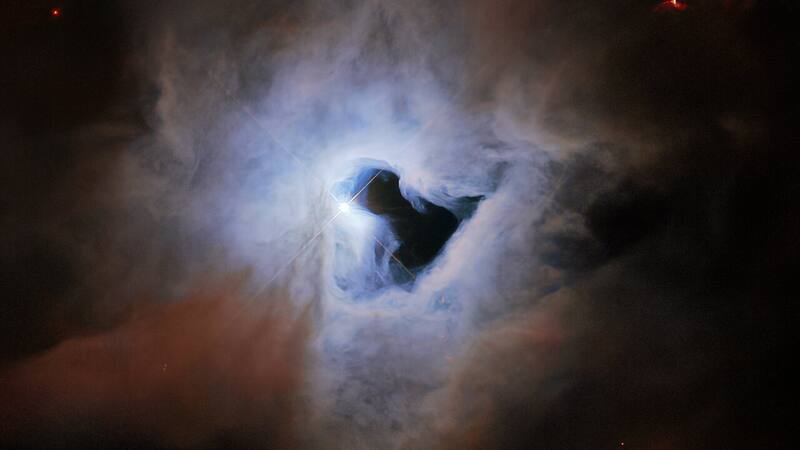 Al igual que la cerradura que se forma al mirar un farol rodeado con niebla, las nebulosas de reflexión como NGC 1999 solo brillan por la luz de una fuente externa, en este caso, la estrella recién nacida V380 Orionis que se visualiza en el fondo de la imagen. Pero lo que más ha llamado la atención de los científicos es el agujero en el centro de proporciones cósmicas.
