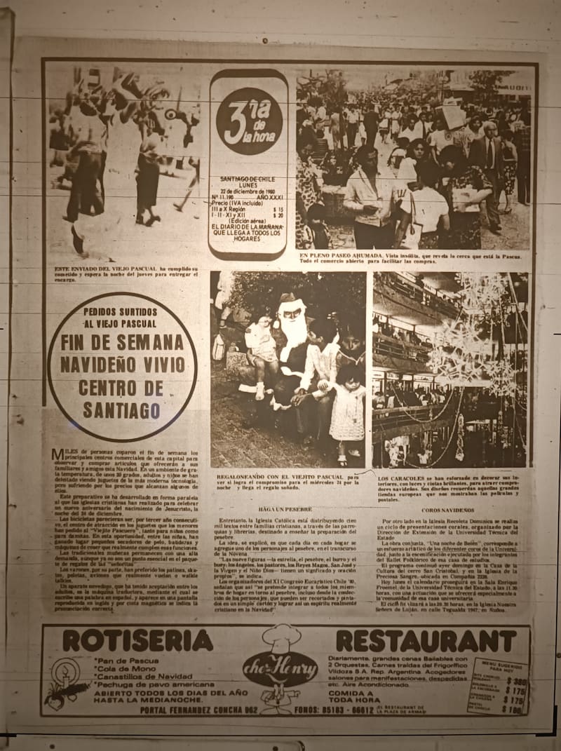 Por Carlos MontesDe regalar frutas al pino y el viejo pascuero: 10 fotos de la historia de la Navidad en Chile