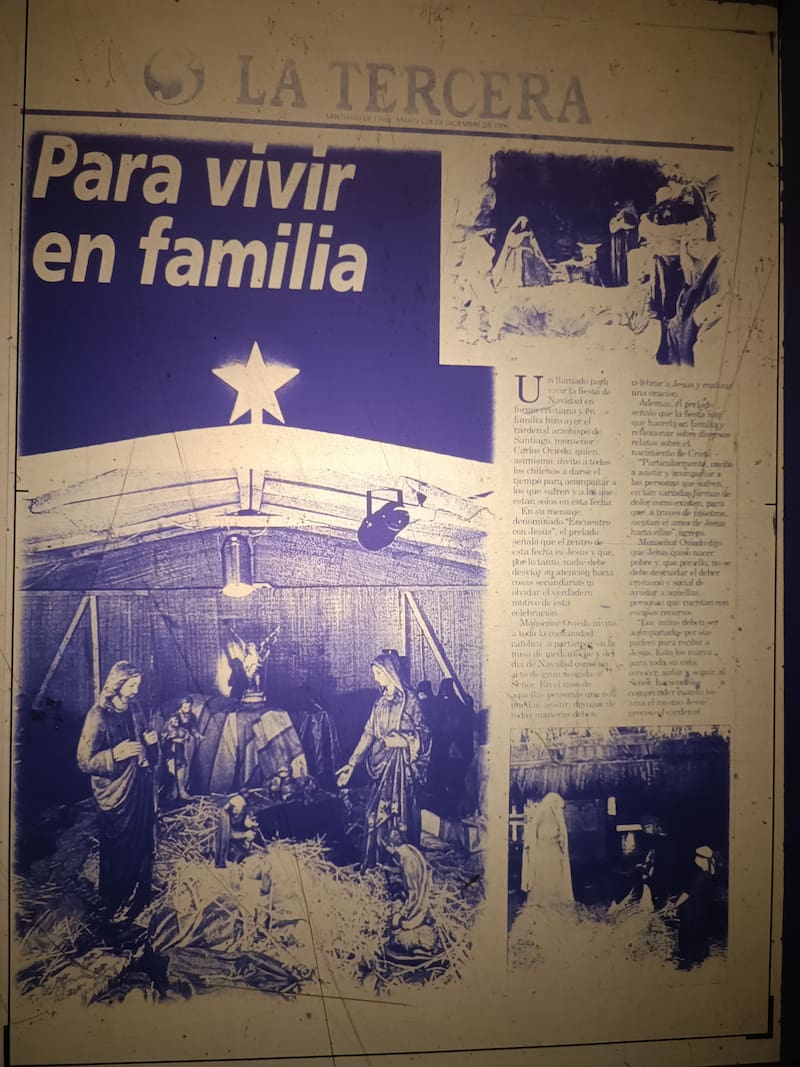 “Quien nos ofrece un testimonio temprano, a la vez que un cuadro sumamente vívido de la tradición navideña en Chile, es el padre Alonso de Ovalle (1603-1651) en su Histórica Relación del Reyno de Chile (1646), donde narra con cierto detalle las procesiones que se efectuaban con motivo de esta festividad, específicamente aquellas que tenían lugar “el día de la Epifanía y Pascua de los Santos Reyes Magos”, oportunidad en la cual un conjunto de andas tenían la misión de transportar “todo el nacimiento de Nuestro Redentor”, relató Carrera.