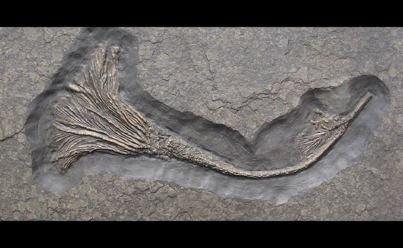 Los crinoideos se conocen desde al menos el Devónico (hace 359-419 millones de años), pero pueden haber existido desde el Ordovícico (más de 445 millones). Estos animales marinos, también conocidos como “lirios de mar”, alguna vez vivieron en el lecho marino en una relación simbiótica con los corales. Los corales crecieron de los tallos de los crinoideos para llegar más alto a la columna de agua y así tener mejores oportunidades de alimentación.