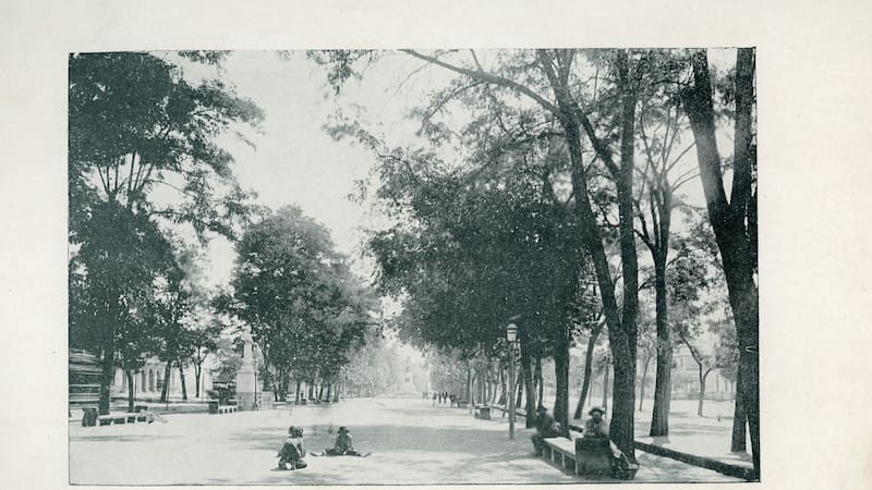 Otra fotografía que llamó mucho la atención, “es el antiguo Parque Cousiño, que actualmente conocemos como Parque O’Higgins. Ésta tenía lagunas navegables, al igual que el Parque Forestal en algún periodo. Podías ir a pasear en bote con toda la familia (como se logra ver en la foto)”, agrega Bengoa.