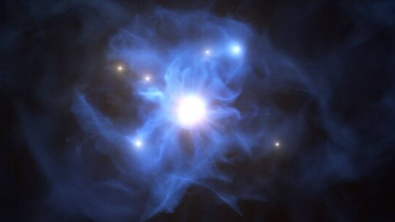 ¿Cómo se formaron antes estas estructuras tan grandes? Los astrónomos apoyan la idea de que la clave está en los halos gigantes de la misteriosa materia oscura. Se cree que, en el universo primitivo, estas grandes regiones de materia invisible atraen enormes cantidades de gas; juntos, el gas y la materia oscura invisible forman estas estructuras similares a redes donde las galaxias y los agujeros negros pueden evolucionar.