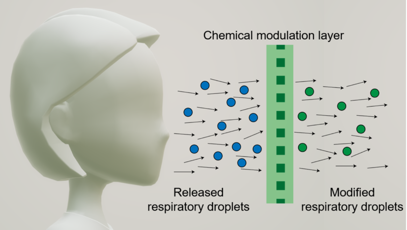 Aunque las mascarillas pueden bloquear o desviar las gotitas respiratorias exhaladas, muchas gotitas (y sus virus incrustados) aún escapan. A partir de ahí, las gotitas cargadas de virus pueden infectar a otra persona directamente o aterrizar en superficies para contagiar indirectamente a otras personas. El equipo de Huang tenía como objetivo alterar químicamente las gotas de escape para que los virus se inactivaran más rápidamente.