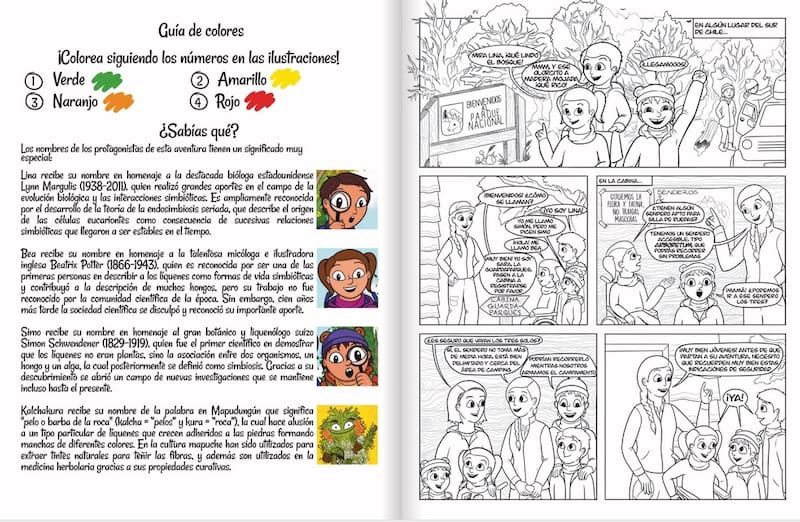 En esta aventura, los exploradores, junto al fantástico Kalchakura, conocen la enorme diversidad de líquenes que habitan los bosques australes del país y su importancia ecosistémica. “El objetivo principal de nuestra iniciativa es que los lectores (y pintores) se fascinen con estos microorganismos tanto como nosotros.
