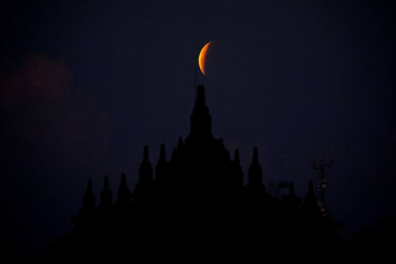 Pero el espectáulo celestial de ayer se sumó otro fenómeno: a las 7.18 de la mañana de hoy, poco antes de la salida del Sol, se produjo un eclipse total lunar (mirando hacia el poniente).