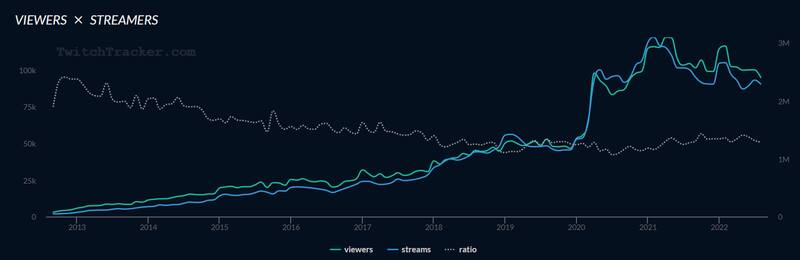 El mejor año para Twitch fue, sin dudas, 2021. La pandemia forzó a que mucha gente quedara confinada en sus casas, lo que motivó a indagar en esta plataforma de visualización y emisión de videos en directo. De acuerdo al informe Live Streaming Industry Report, de StreamLabs, Twitch es la única plataforma que experimenta un crecimiento en comparación con el trimestre anterior. Durante el 2021 se registraron 3.1 billones de minutos transmitidos, y en el primer trimestre de este año esta cifra supera las 483 millones de minutos emitidos. Actualmente, Twitch representa el 76% de la participación de mercado en horas vistas de transmisiones en vivo y el 91% en horas emitidas, en comparación con YouTube y Facebook.