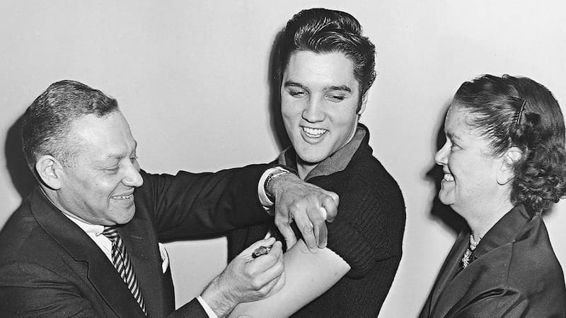 Si hubiera sintonizado el programa de Ed Sullivan el 28 de octubre de 1956, habría sido testigo de un inesperado promotor de la salud pública. Justo antes de subir al escenario para girar a través de su exitosa versión de “Hound Dog”, el rompecorazones adolescente, Elvis Presley , recibió una vacuna contra la polio en vivo por televisión. El comisionado de salud de la ciudad, que estuvo presente para la sesión fotográfica, elogió a Presley: “Está dando un buen ejemplo para la juventud del país”.