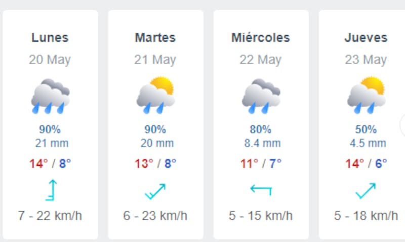 Y esta fase casi de neutralidad es la que explica el anuncio de la llegada de un sistema frontal de hasta cuatro días en Santiago durante la próxima semana, bautizado como “tren de sistemas frontales”, debido a su extensión de varios días.