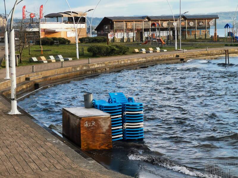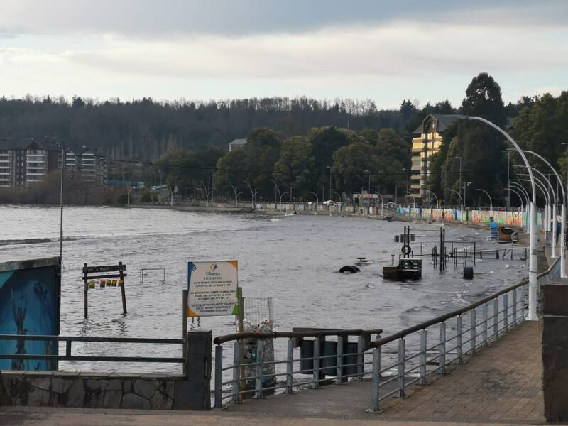 Diferentes registros en redes sociales y de medios locales, evidenciaron lo descrito. A los que se sumaron una serie de fotografías capturadas por la Universidad Católica de Villarrica. El agua del lago (que totaliza 176 km2) llegó hasta la costanera, ubicada justamente, junto a la playa.
