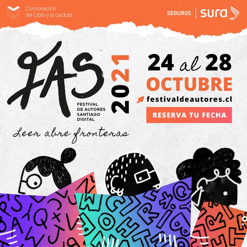 Organizado por la Corporación de Libro y la Lectura junto con Seguros Sura, el Festival de Autores Santiago (FAS) llega este 2021 en formato digital con una serie de presentaciones, conversaciones y talleres bajo el lema “Leer abre fronteras”.