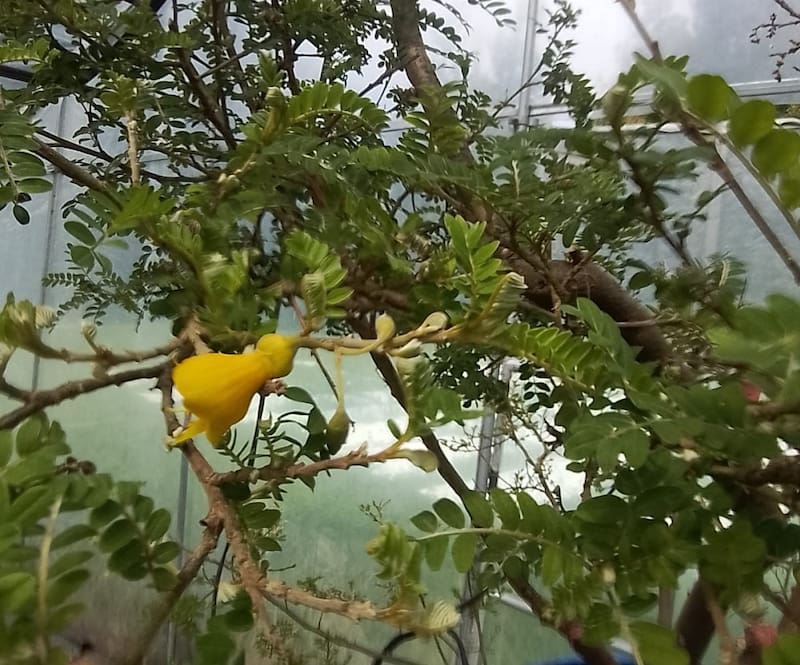 Científicamente llamado Sophora Toromiro, es un árbol pequeño, con hojas compuestas por folios y en sus ramas crecen flores tubulares, parecidas a un copihue, pero amarillas.