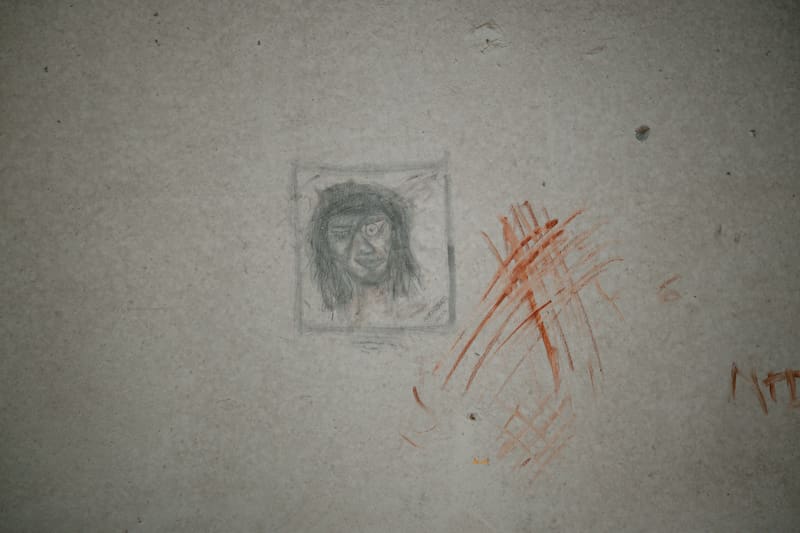 Algunas cosas llamaron particularmente mi atención, sostiene, “por ejemplo un autorretrato rayado en una pared, eran dos rostros distintos unidos. También un escrito en un muro interior, que probablemente fue hecho con un vidrio, que decía “ELECTROSHOCK 120 VOLTS”.